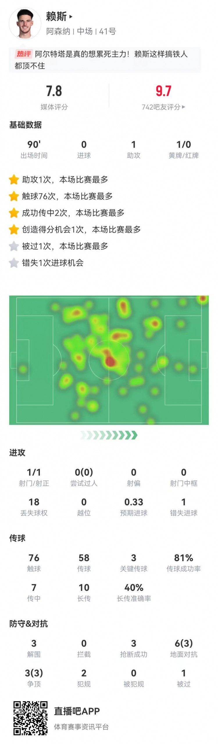 Không đăng lại mà không được phép:SengNews » Rice bỏ lỡ 1 cơ hội, 1 kiến tạo, 3 đường chuyền then chốt, 3 lần cản phá, 3 lần cướp bóng, 9 lần đối đầu và 6 lần thành công