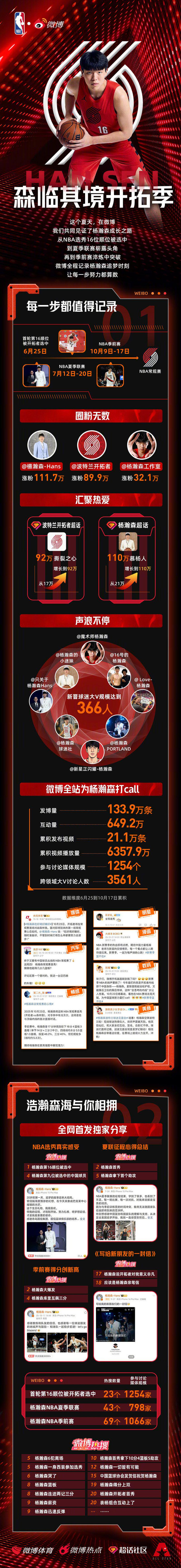 {1[Báo cáo lưu lượng truy cập của Yang Hansen @杨瀚sen-Hans] Từ giai đoạn dự tuyển đến Giải đấu mùa hè cho đến giai đoạn tiền mùa giải, Yang Hansen đã gây được tiếng vang trên mọi chặng đường. Người hâm mộ đã chứng kiến, truyền thông tập trung và tìm kiếm nóng. Mùa phát triển nhập vai ghi lại sự tiến bộ của Xiao Yang. Hãy đến weibo để theo dõi quá trình trưởng thành của Yang Hansen và cổ vũ cho Xiao Yang! #杨瀚ra mắt mùa senregular##杨瀚sen[超话]#