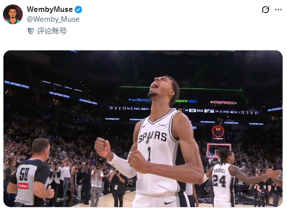 Trong trận chiến với Heat, Wenbanyama ghi được 14 điểm và 9 rebound trong hiệp một. Trong hiệp hai, anh ghi 13 điểm, 9 rebound và 5 block. Anh ấy lần lượt gửi những khối lớn trong hiệp vừa qua và dẫn dắt đội giành chiến thắng với hàng phòng ngự vượt trội. Sau khi giành chiến thắng, Wenban ôm đồng đội rồi giơ tay gầm lên ăn mừng cuồng nhiệt. Anh ấy thực sự rất hạnh phúc.
