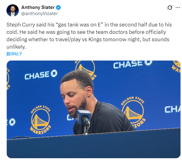 Trong một cuộc phỏng vấn sau trận đấu, Curry nói rằng tình trạng cảm lạnh của anh ấy trở nên tồi tệ hơn và anh ấy không chắc liệu mình có thể thi đấu với Kings vào ngày mai hay không; Trong thời gian này, Curry xì mũi và vẫn ho.